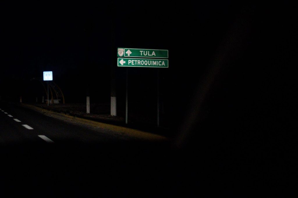 Letrero sobre la carretera federal Jorobas-Tula que indica la zona industrial de Hidalgo.