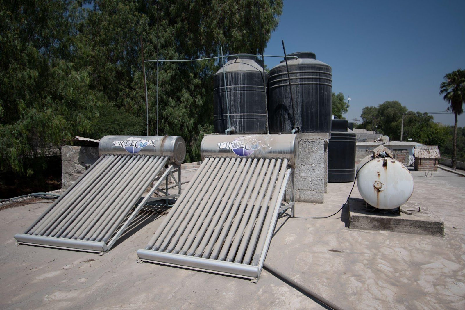 Calentadores solares en la azotea de un habitante de Apaxco, Estado de México.
