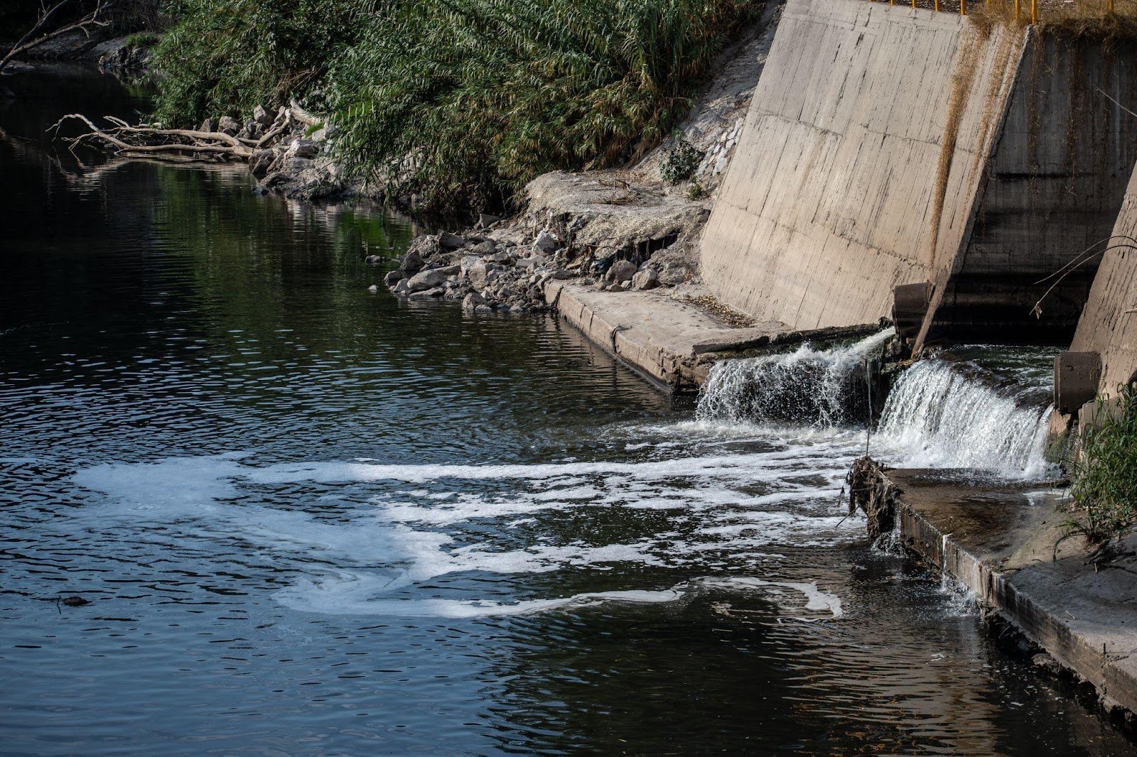Desagüe empresarial que desemboca en el río Tula.
